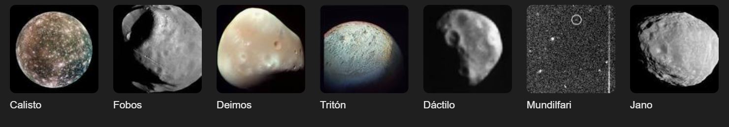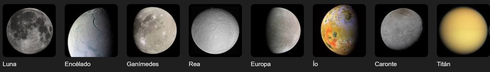 - Pueden variar en tamaño, desde pequeñas lunas hasta grandes satélites como la Luna.